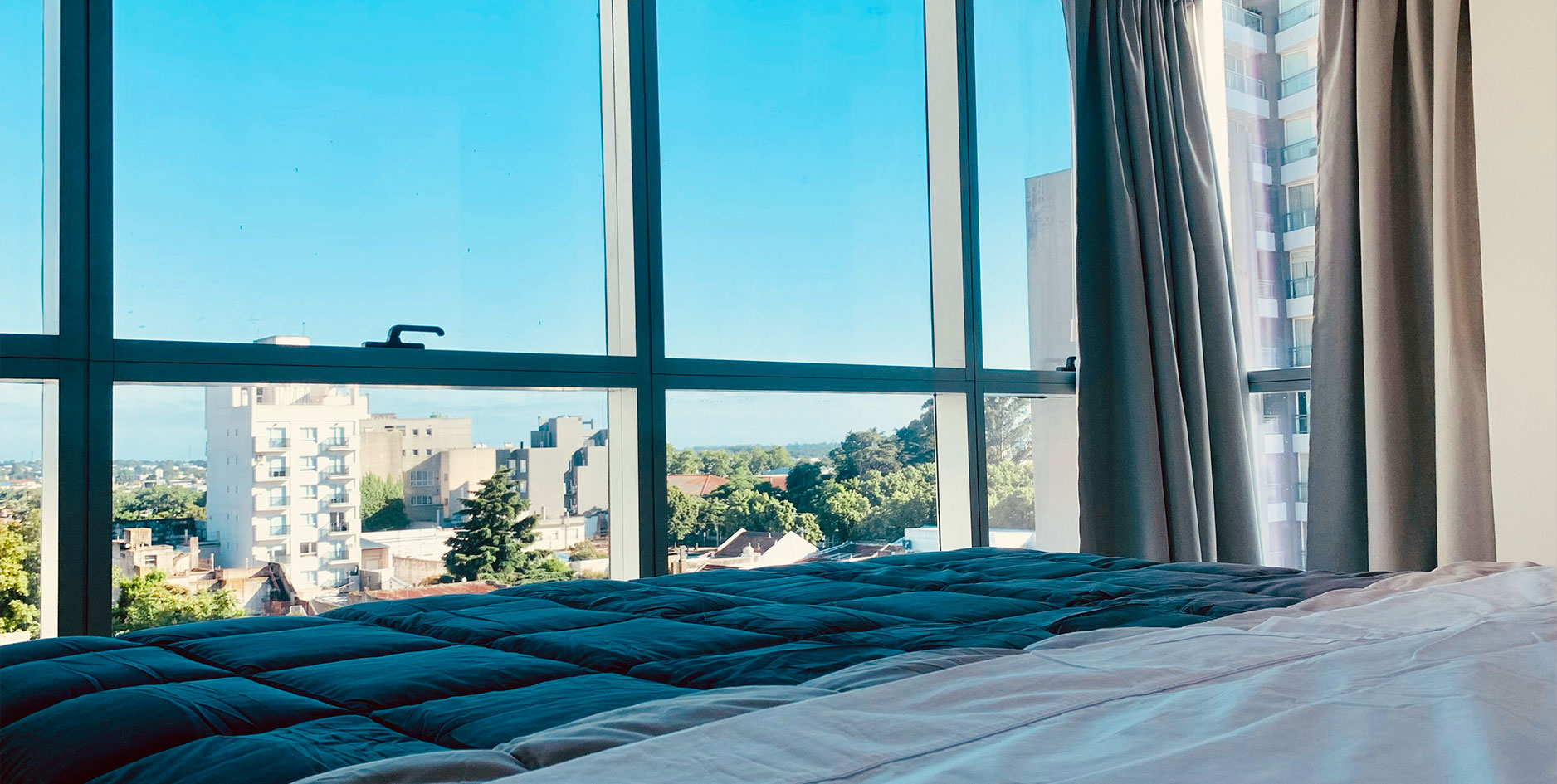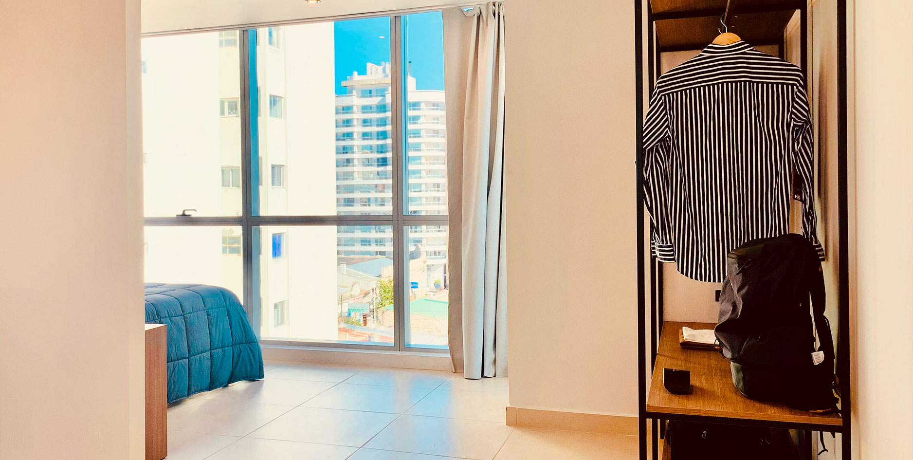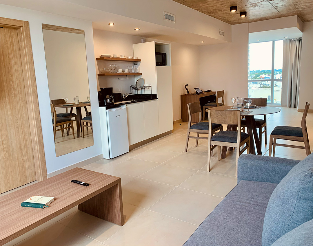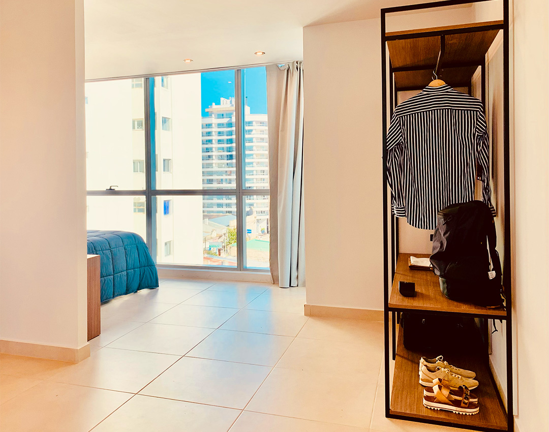 Habitación con separación e intimidad del escritorio, la cocina y el living.