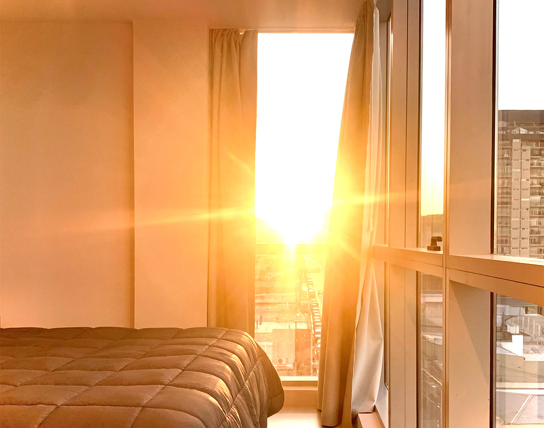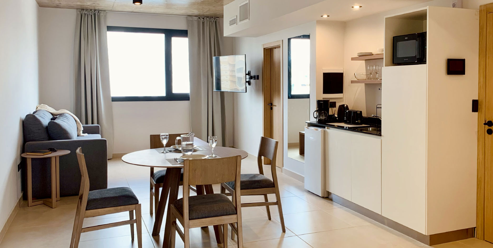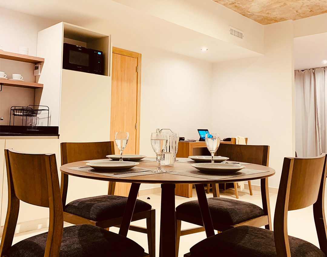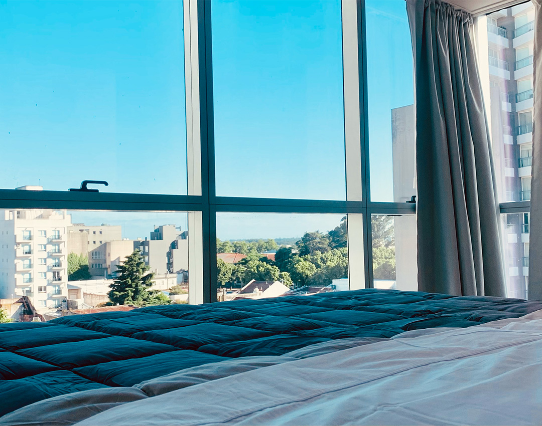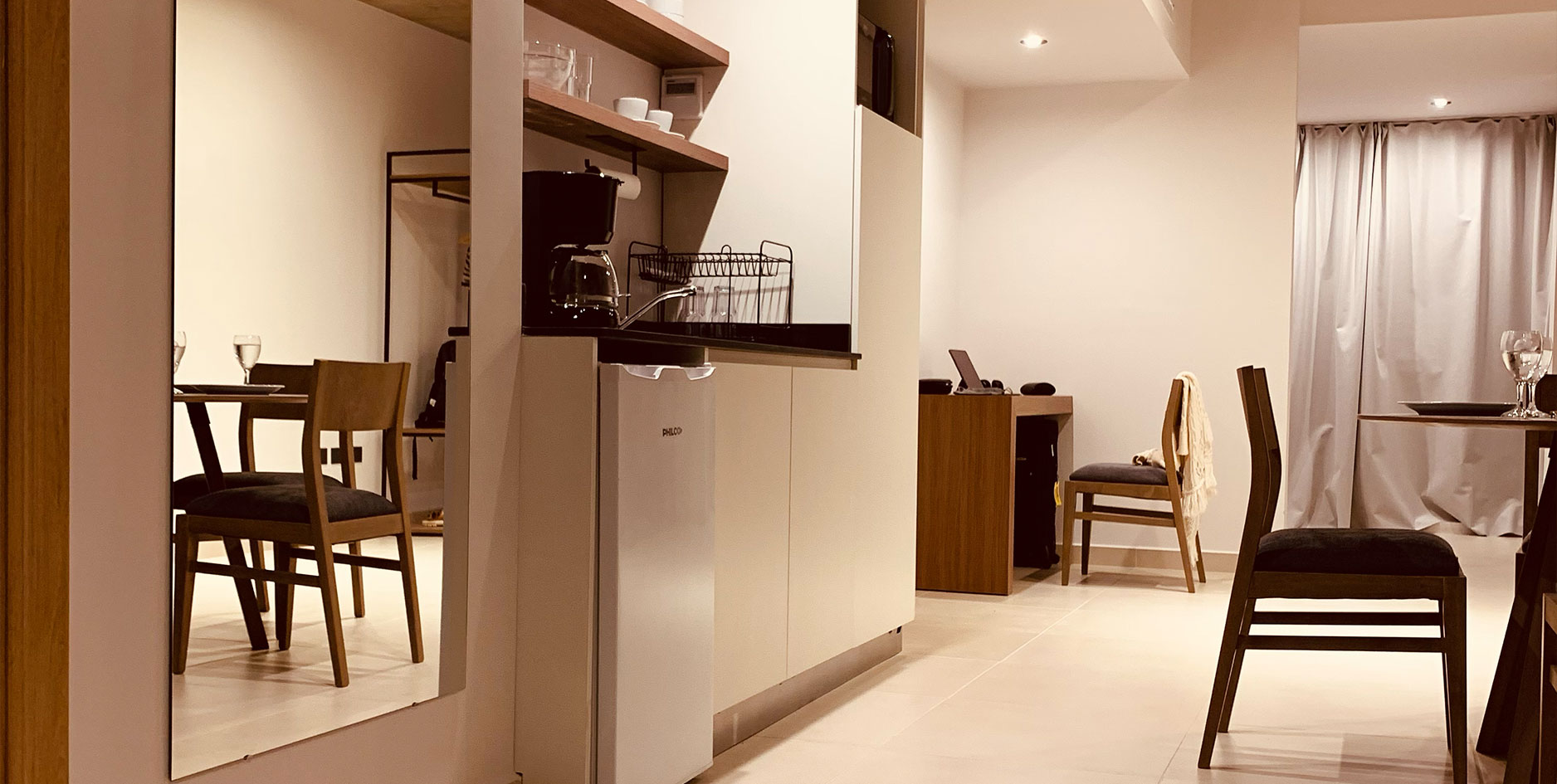 Habitación con separación e intimidad del escritorio, la cocina y el living.